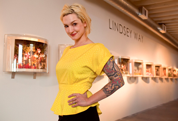 Ahora puedes visitar la galería de Lindsey Way en su pagina web: www.lindseyway.com; en ella puedes disfrutar de su colección que consta de 13 dioramas denominada HUSH, además de una mini-biografía de la flamante señora Way.Y diorama qué es? Bueno, un diorama denota una reproducción parcialmente tridimensional, del mismo tamaño o modelo de la escala de un paisaje que demuestra típicamente acontecimientos, escenas o cityscapes históricos de la naturaleza.